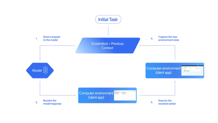 该模型的核心能力是通过GeminiAPI中新增的computer_use工具实现的,开发者使用时需在一个循环流程(loop)中运行。